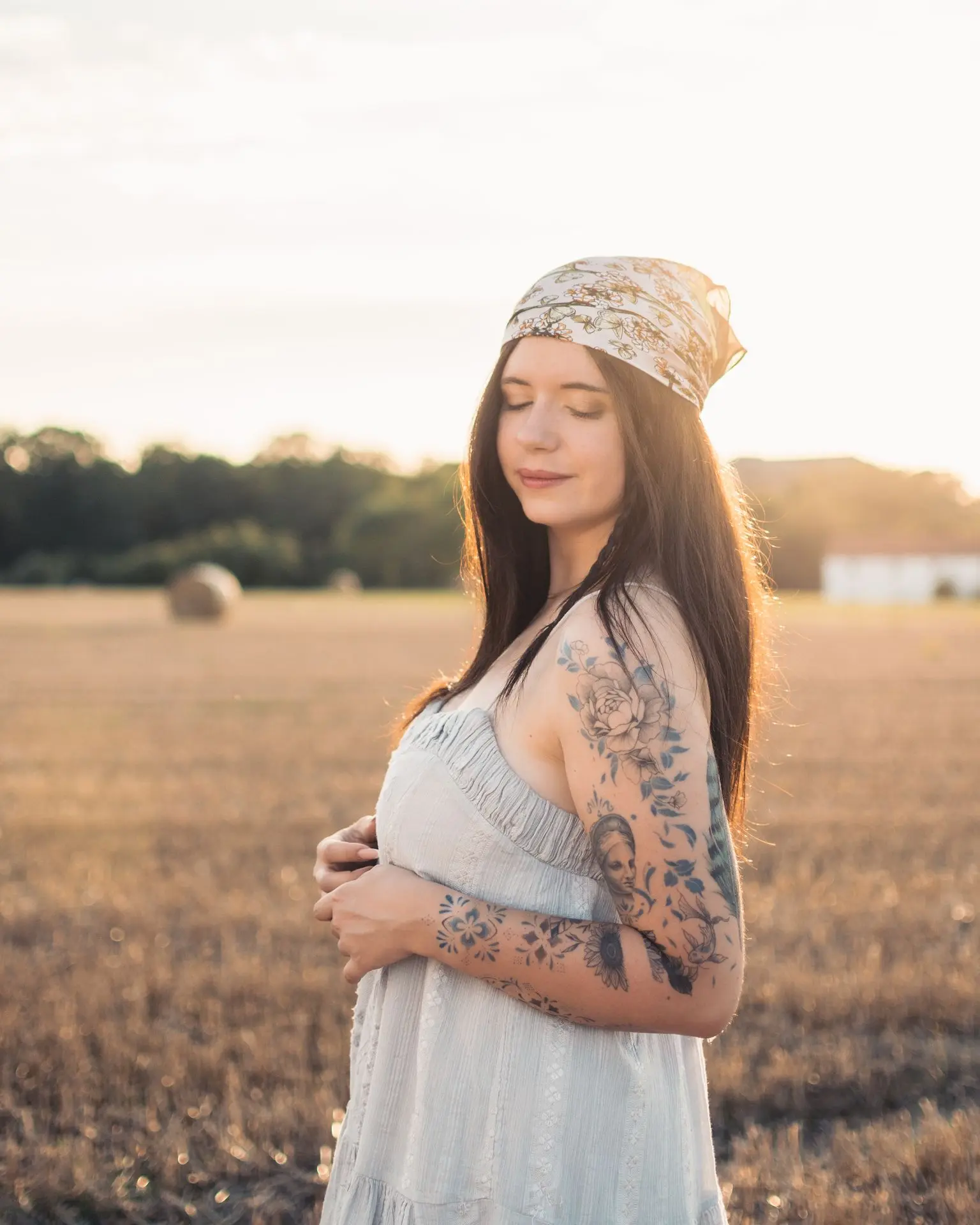 À l’heure dorée, tout devient plus calme, plus vrai. Le soleil caresse les formes, réchauffe les traits, et révèle une beauté naturelle, sans artifice.
